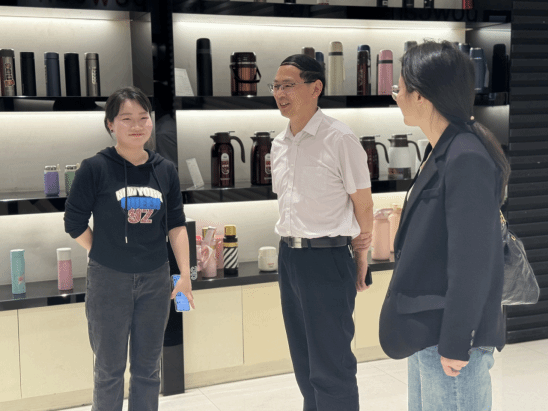 在义乌市丽馨纺织有限公司,樊廷友书记实地察看了员工李友芳同学目前实习工作的门店,询问员工的工作内容、上下班交通、生活住宿等情况,叮嘱员工一定要注意生命建康安全,希望员工能够多跟领导、同事交流沟通,学习销售技巧,并且能够学以致用,不断提升自身专业技能。