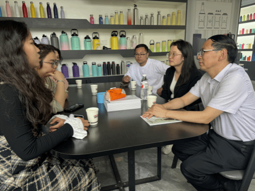 在浙江水西工贸有限公司,谭国华总经理详细介绍了陈美竹、赵洁、王怡文三位同学在企业的表现情况,对公司实习员工认真努力、踏实勤奋的态度非常满意,并对公司积极向企业输送人才表达了感谢,希望能够与公司更深入的开展校企合作交流。樊廷友书记对企业为员工提供的优质岗位表达感谢,并希望能与企业建立长期稳定的校企合作关系。