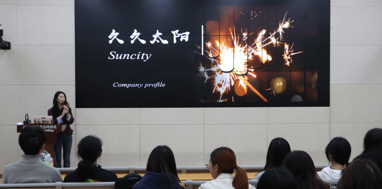 企业代表程琳璐向在场师生介绍了公司的基本情况。久久太阳电子商务有限公司成立于2014年,是浙江区域内首家阿里巴巴外贸人才服务商,是永康市商务局和永康市人力资源和社保局官方指定的为永康引进人才的企业,同时也是义乌阿里巴巴特区的指定人才输送单位。公司专注于为本地8000多家跨境电商企业提供外贸业务员人才和外贸技能培训等服务。程老师介绍了目前在永康企业岗位实习同学的近况和发展前景,并表示会为员工提供更多实习和就业机会,充分发挥实习基地的作用。