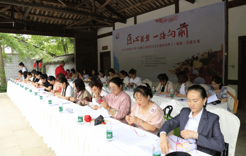 此次比赛由成都市新津区总工会联合区人社局在天府农博园4A级斑竹林景区桂花巷举办,成都市绳编爱好者及巧匠、龙泉土桥小学等,共计30人参赛,用巧手炫技展现民间绳编文艺魅力。