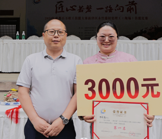 为传承指尖上的绳编技艺,弘扬中华优秀传统文化,5月10日,三亿教师张智老师和杨宗英老师参加了“匠心若磐·一路向前”2024年成都百万职工技能大赛新津区木竹藤材处理工(绳编)技能比赛,杨宗英老师荣获第一名。