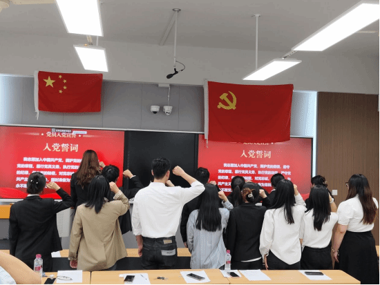 按照中国共产党党员发展流程,即将转正的预备党员、发展对象先后对自己的入党动机、对党的认识、学习和工作期间的现实表现以及其他需要向党组织说明的问题作了充分阐述。入党介绍人从思想方面、学习、生活等多个方面详细地介绍了考察对象的现实情况、培养考察情况并就是否同意其转为正式党员或发展为预备党员表明了意见。与会党员同志发表意见,肯定他们的优点,也指出了存在的问题。支部组织委员分别汇报了即将转正的预备党员和即将新发展同学的政审情况。最后,具有表决权的党员对他们分别进行了表决。经支部大会表决一致同意将卢金蝉等9名预备党员按期转为中共正式党员,吸收王鹏等6名同志为中共预备党员。转正的党员同志进行了庄严宣誓。