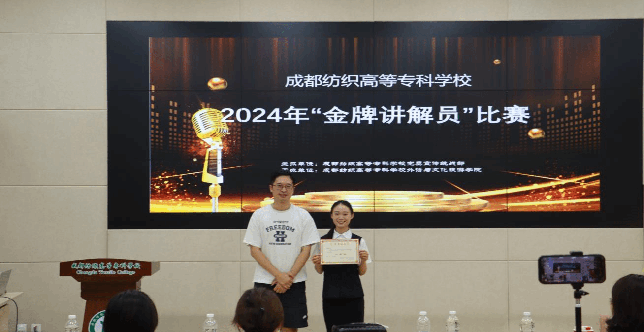 王歆为本次大赛致辞,她表示此次大赛举办的目的是为了提高同学们们的讲解能力,同时让同学们走进公司文化,认同公司文化,做到“知校、爱校、闻校”,并且能够讲好成纺故事,传播校园文化。