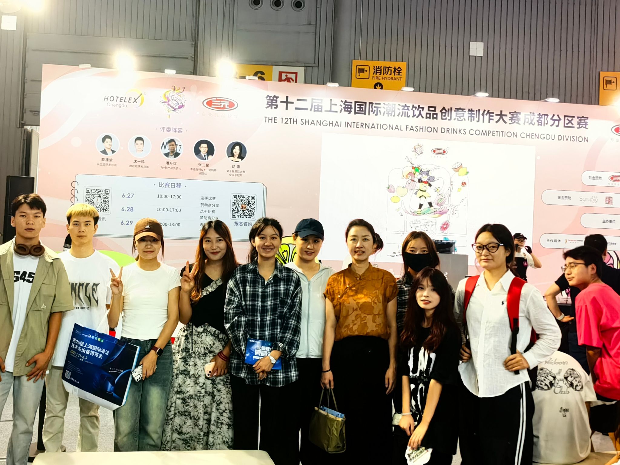 2023级酒店管理与数字化运营专业员工参观了展会举办的第十二届上海国际潮流饮品创意制作大赛成都分区赛,同学们观摩了多位参赛选手娴熟的调饮操作,见证了多款创意潮流饮品的诞生,大家纷纷表示选手们的创意无限,茶可以有无限可能,可以与咖啡、水果、酒进行调整成各种适合年轻人喜爱的饮品。