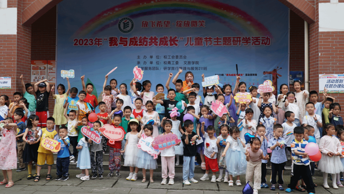 恰巧5月9日收到川工教科文卫〔2023〕15号文件《关于开展2023年教科文卫体系统职工子女关爱活动的通知》,结合通知文件要求,研学管理211班同学在余老师的指导下,将活动方案在“我与成纺共成长”这一大主题下,进一步设计成了3-6岁“劳动乐创造,美丽趣世界”与7-12岁“非遗承匠心,锦绣启生涯”两个不同细分主题的儿童研学活动。在活动开始前10天发布了儿童节活动海报报名,教职工报名热度高,报名儿童人数达到90余人。
