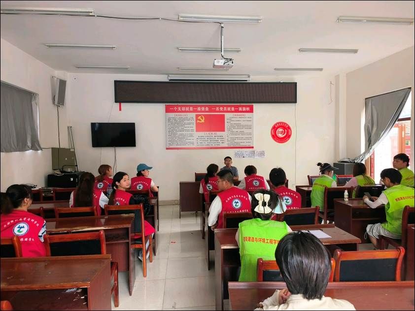 下午活动结束后,冯坝村李政辉书记和带队老师贾杰雯组织同学们开展了会议,对明日的大规模人居环境整治活动开展进行细致安排。